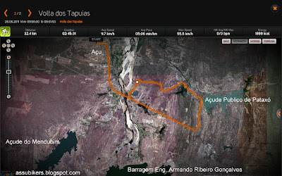 A Trilha Dos Tapuias leva o nome da tribo de índios que habitava as imediações do Vale do Açu. Um percurso um pouco mais complicado, devido a muitas bifurcações, devendo assim ficar atento. Com cerca de 32,5km e um bom trecho off-road, a Volta Dos Tapuias tem como destino, um dos pontos turísticos mais belos da região, o Açude Publico De Pataxó. Uma boa diversão para iniciantes e intermediários que gostam de se aventurar na natureza!!!